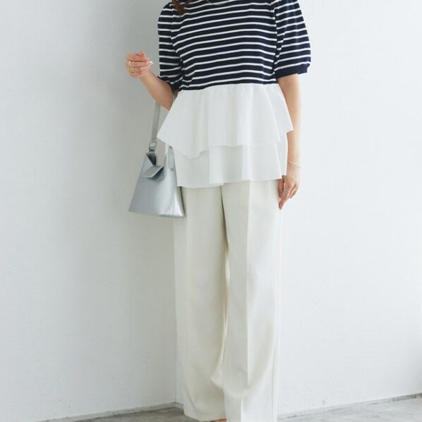 【予約】布帛ドッキングペプラムニット【Pierrot】[送料無料]【6月上旬頃より順次発送】