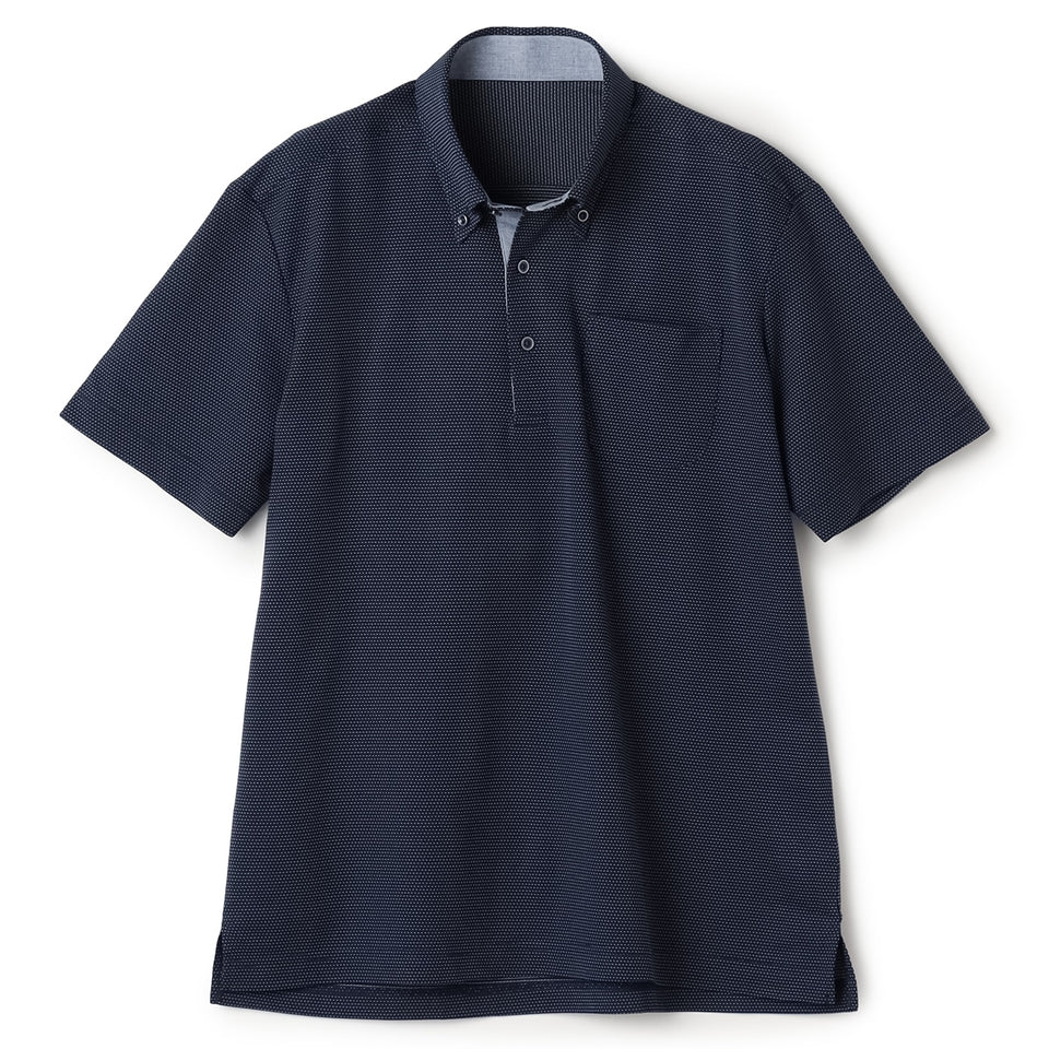 ドレスシャツのようなすっきりとした衿立ちはそのままに、袖付けをTシャツスタイルに変更することで可動域が広がり、動きやすく、着心地も向上しました。衿の角度やボタンの位置を改良し、よりシャープな印象に。
